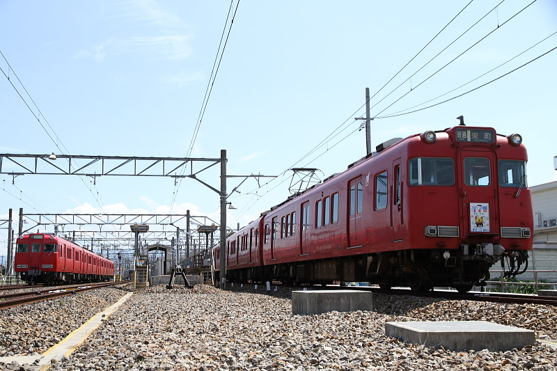 運用の都合でヘッドマークを取り付けたまま一度尾張旭検車区に入庫。再度の出庫までしばしの休息。