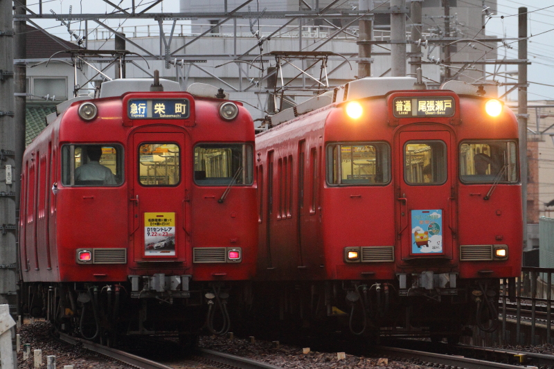 8月18日・19日の2日間は栄町駅乗り入れ記念でHL行先板掲出イベントが開催され、行先系統板付き編成との並びが実現。