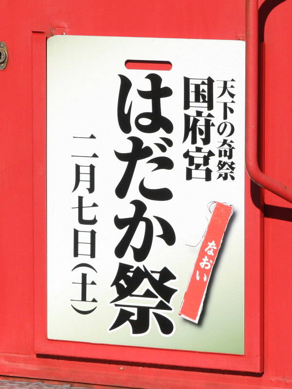 愛知県稲沢市の尾張大國霊神社(国府宮)で毎年旧暦1月13日に行われる「はだか祭」をPRするヘッドマークです。