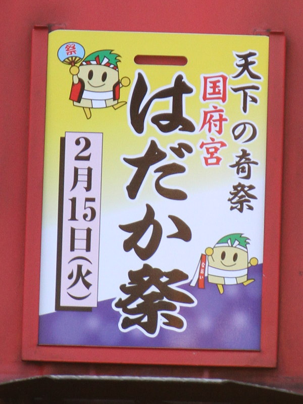 愛知県稲沢市の尾張大國霊神社(国府宮)で毎年旧暦1月13日に行われる「はだか祭」をPRするヘッドマークです。